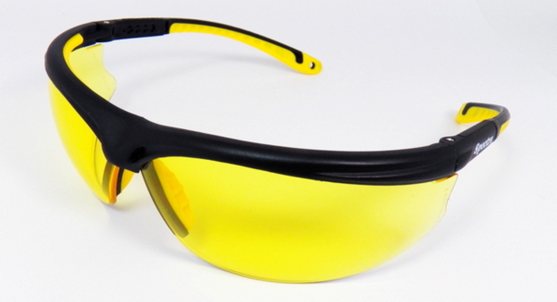 Anteojo MSA modelo Spectra. Lente ámbar, marco negro y amarillo. Diseño deportivo y óptima protección contra lesiones oculares. Doble inyección de TPE en patillas y puente nasal para mayor comodidad. Molde de TPE insertado en el marco ofrece un confort excepcional y protege de lesiones. Patillas telescópicas con 4 puntos de ajuste. Completa protección envolvente. Aplicaciones: Agricultura, Arenado y Esmerilado, Centrales y Distribución Eléctrica, Construcción, Farmacéuticas, Fundición e Industria Metalúrgica, Gas y Petróleo, Industria Alimenticia, Industria Nuclear, Minería, Pasta y Papeleras, Pintura a Pistola, Químicas, Sustancias Peligrosas, Tratamiento Aguas Potables y Residuales. Cumple con ANSI Z87.1 y EN166.