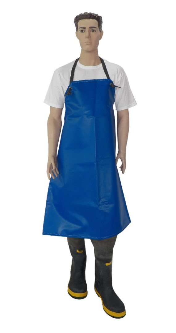 Delantal modelo pescador corto, confeccionado en tela PVC trama cobertura, con dobladillo para su refuerzo, cosido con hilo de nylon reforzado. Largo 1 mts.