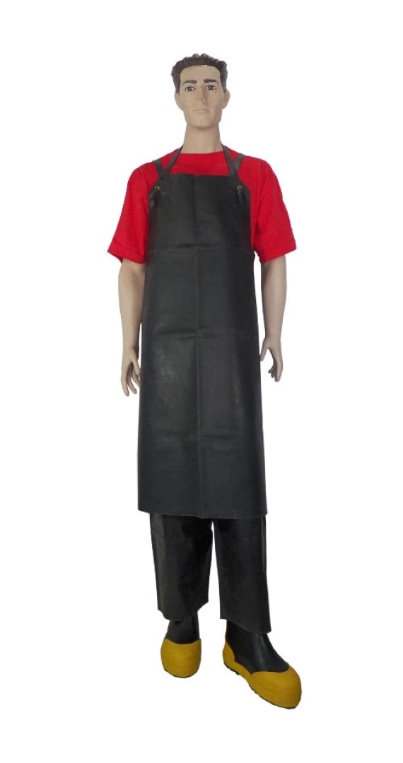 Delantal confeccionado en tela engomada, con costuras selladas, ojales de bronce, cintas para sujeción. Largo 1 mts.