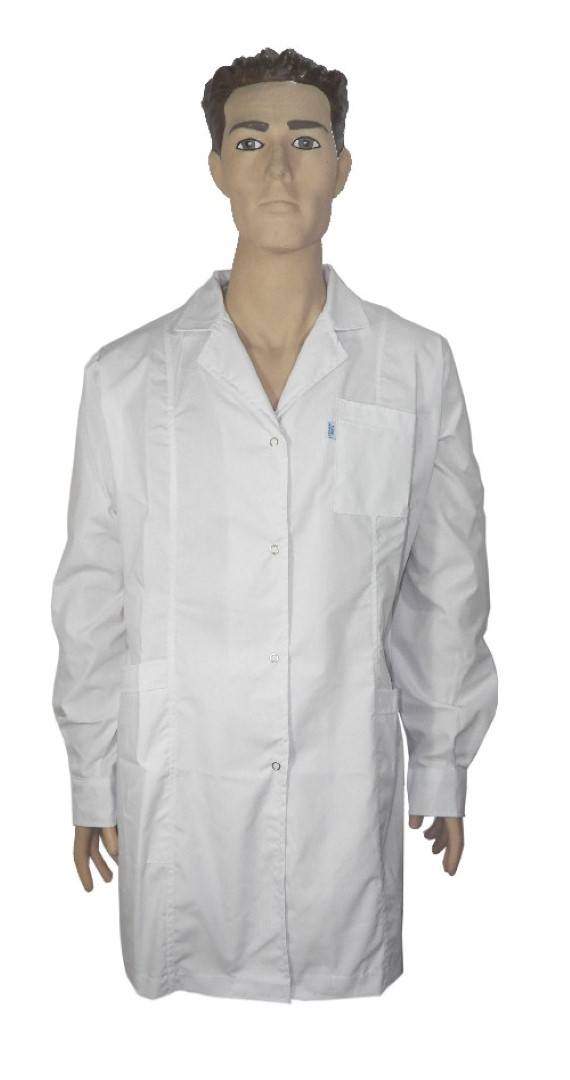 Guardapolvo de Dama, confeccionado en tela Grafil, tres bolsillos delanteros, martingala en espalda y broches metálicos. Color Blanco. Talles 40 al 60.