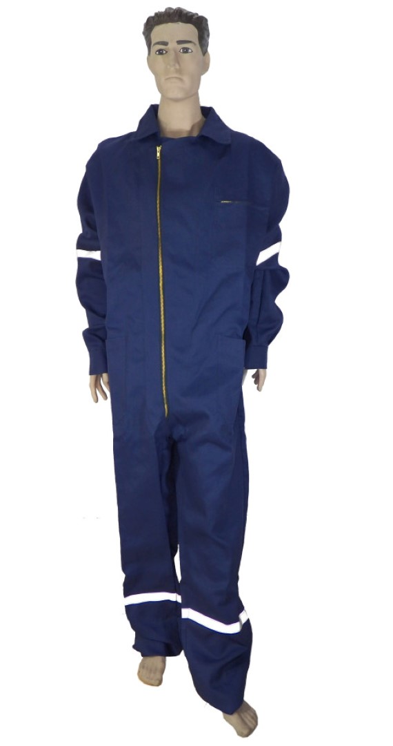 Mameluco corte español, con cierre. Confeccionado en algodón con tratamiento retardante de llama. Brinda protección contra el calor y el fuego. Se recomienda su uso para las industrias petroleras, químicas, siderúrgicas, metalúrgicas, etc. Color Azul. Talles 48 al 60.