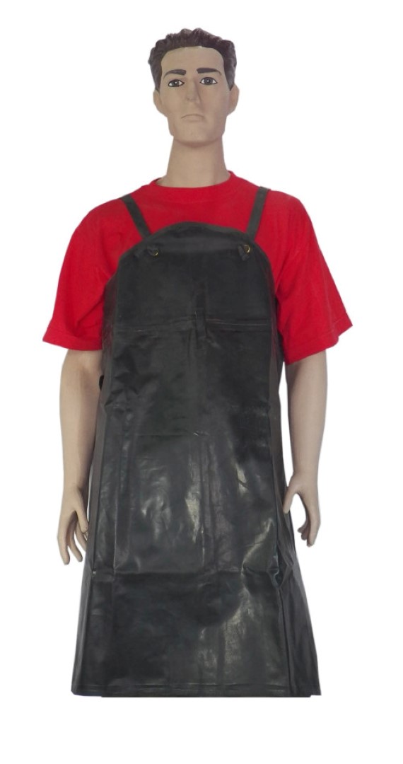 Pollera con pechera, confeccionada en tela engomada, costuras selladas, refuerzos de látex laterales y tiradores para sujeción. Talles 1 al 3 (Cód. 3), talles 4 al 5 (Cód. 35).