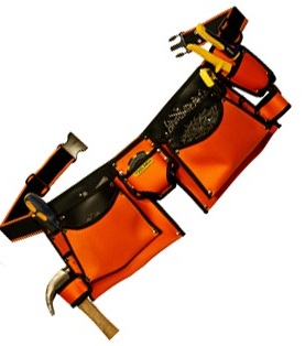 Portaherramientas doble para Durlockeros y Carpinteros, confeccionado en tela BKR a base de Poliéster y PVC.