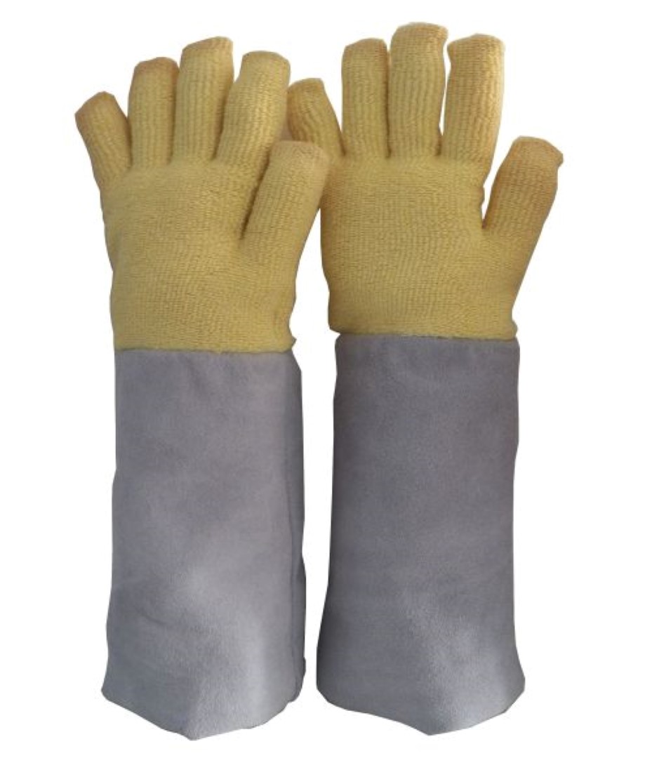 Guante tejido en Terrycloth con hilado de aramida, forro interior de algodón y puño descarne. Largo 47 cm. Recomendado para trabajos donde la mano esté expuesta en forma continua a elevadas temperaturas. El forro interior le otorga mayor poder aislante. El puño de descarne abierto, permite una rápida extracción del guante a bajo costo. Diseñado para la manipulación intermitente de objetos a temperaturas desde 200 hasta 250º C. Bajo Normas IRAM 3607 y 3608.