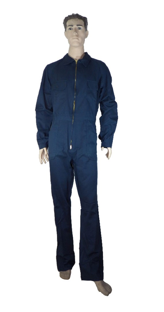 Mameluco clásico de grafa, posee seis bolsillos, dos superiores con tapa, dos a la altura de la cintura y dos en la parte posterior. Manga larga con puño. Cintura con pasacintos y elástico, cierre doble carro. Talles 48 al 60. Color Azul Marino.